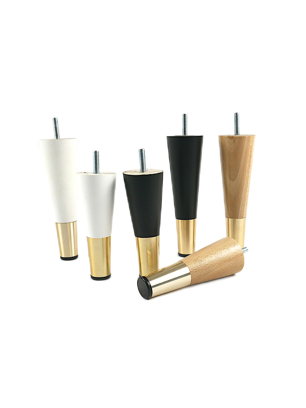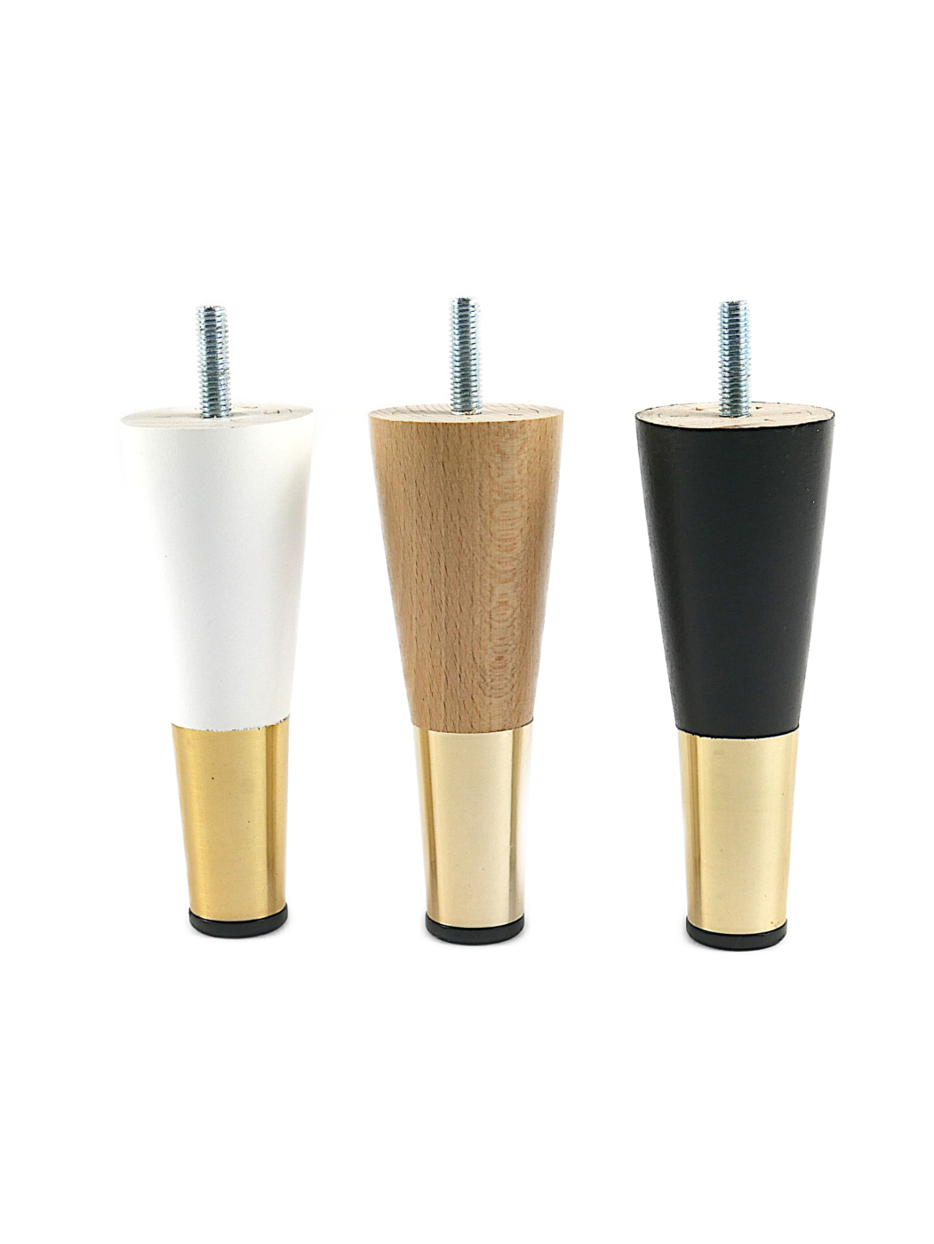 Noga meblowa z nasadką mosiężną scalona za pomocą śruby. Wysokość nasadki  50 mm